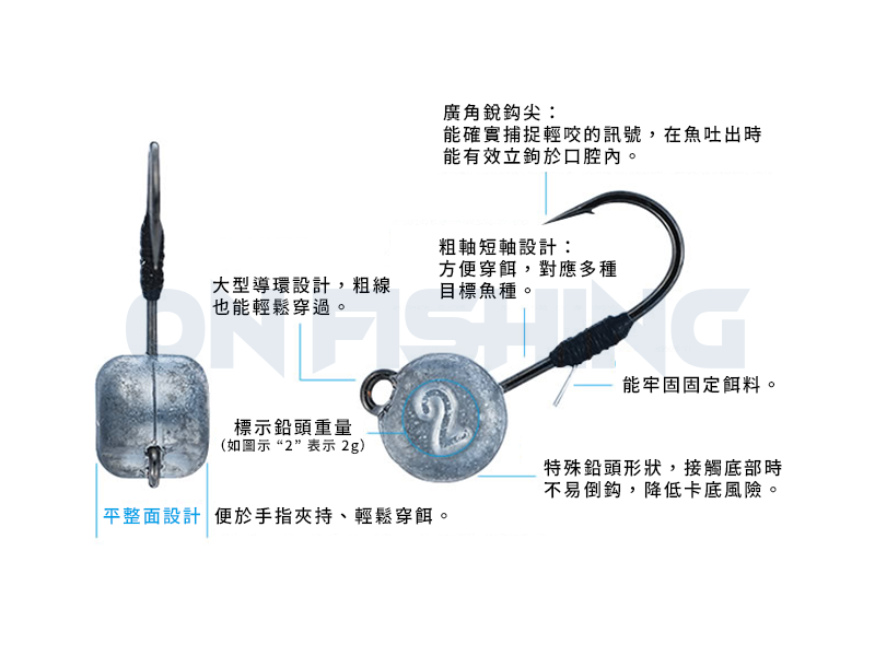 - 餌料專用鉛頭鈎,讓您輕鬆享受餌料釣魚的樂趣。